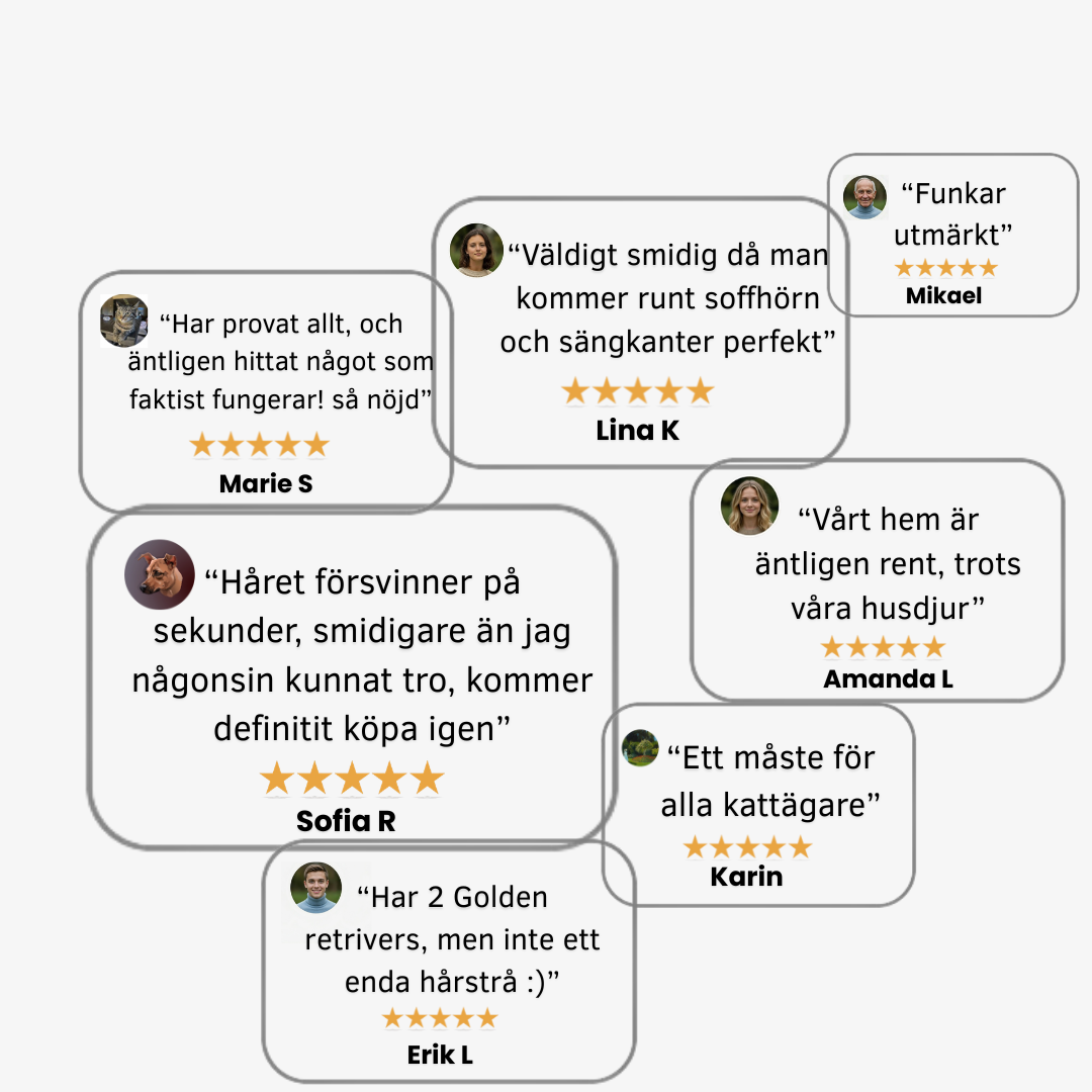 CleanPaw har snabbt blivit en favorit i svenska hem där päls är en del av vardagen. Kunder uppskattar hur enkelt och effektivt den tar bort hår från soffor, kläder och textilier – utan krångel. Det är därför så många väljer CleanPaw om och om igen. Din nöjdhet är vår högsta prioritet.
